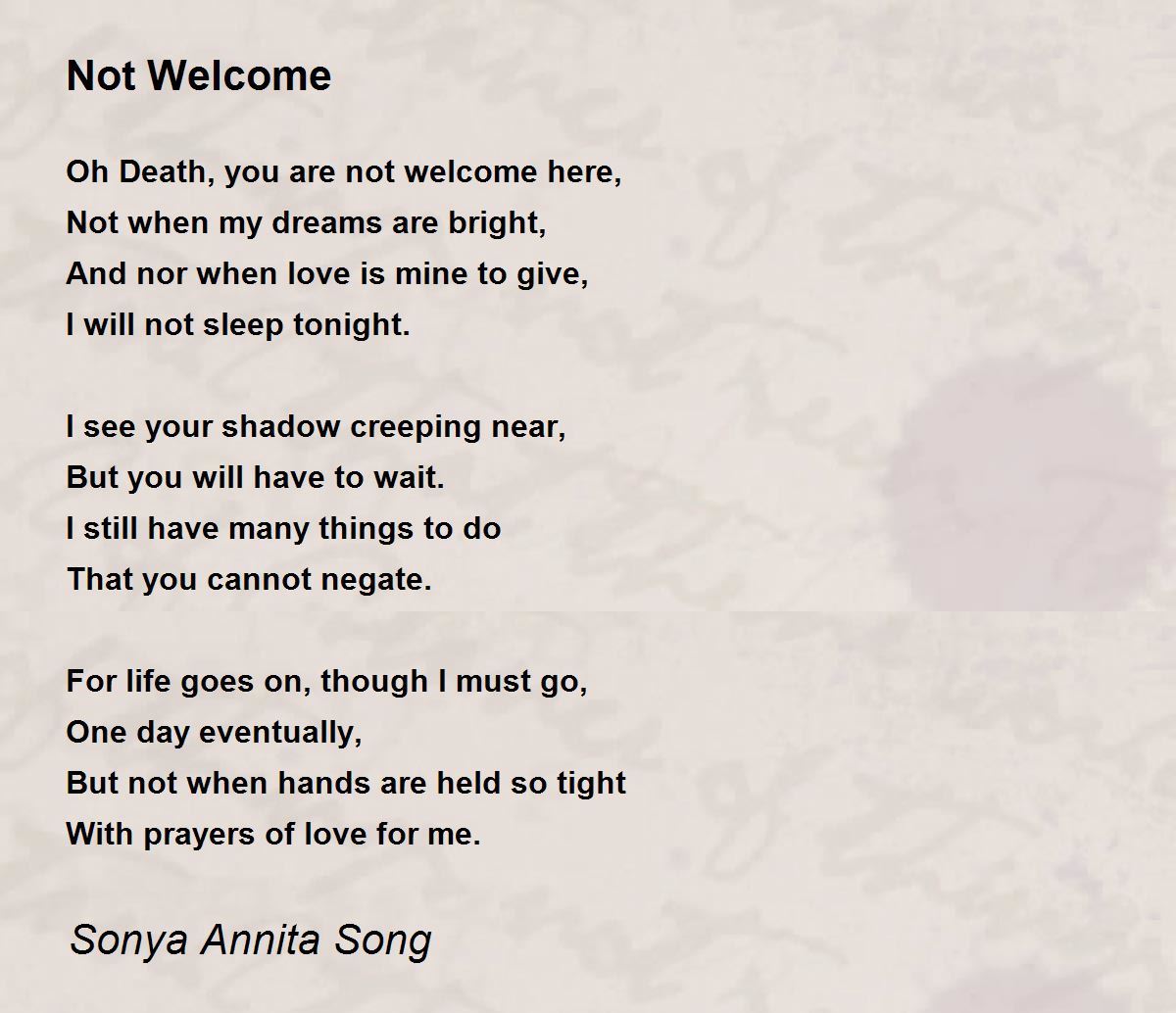 Oh Death, you are not welcome here,