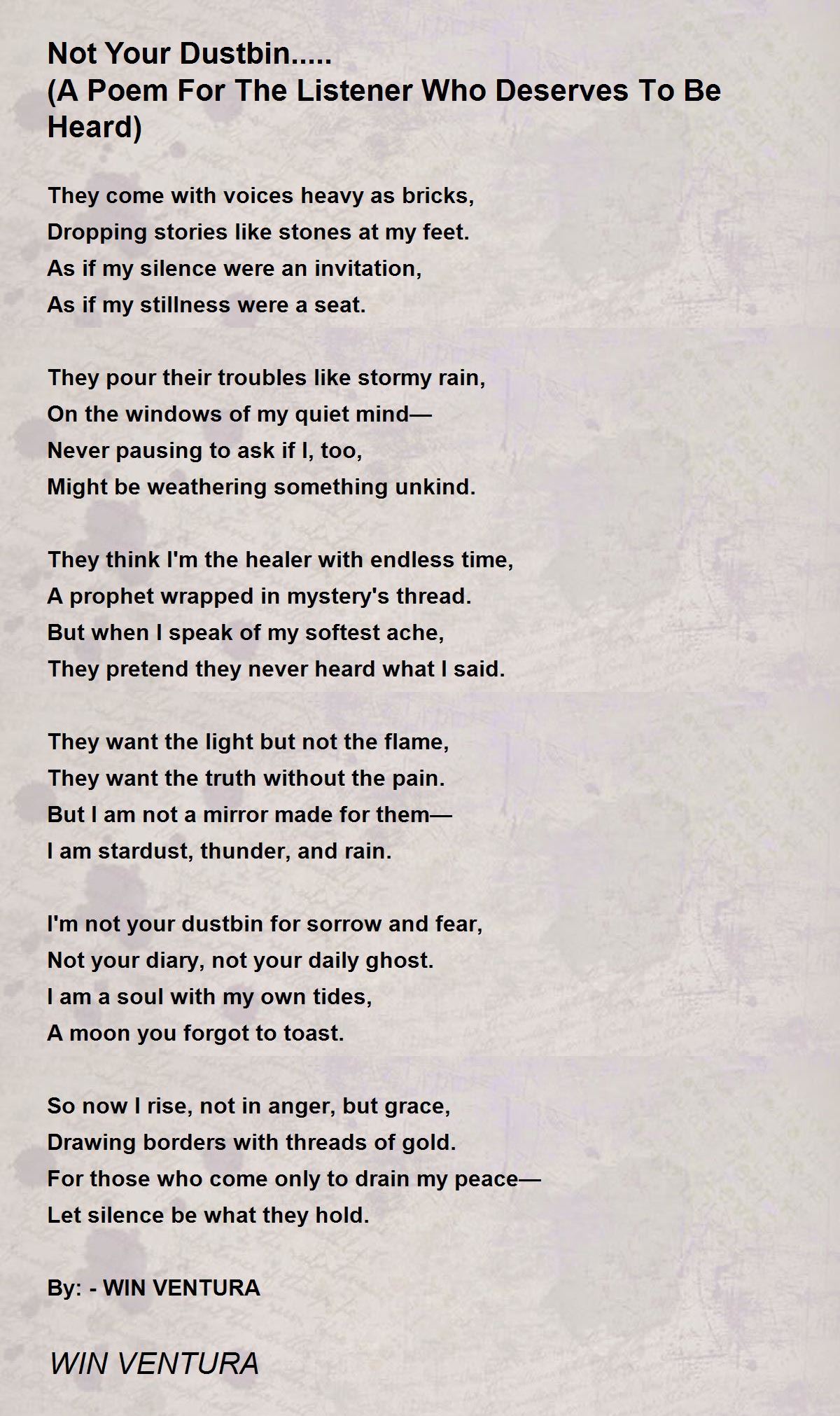 I'm not your dustbin for sorrow and fear,