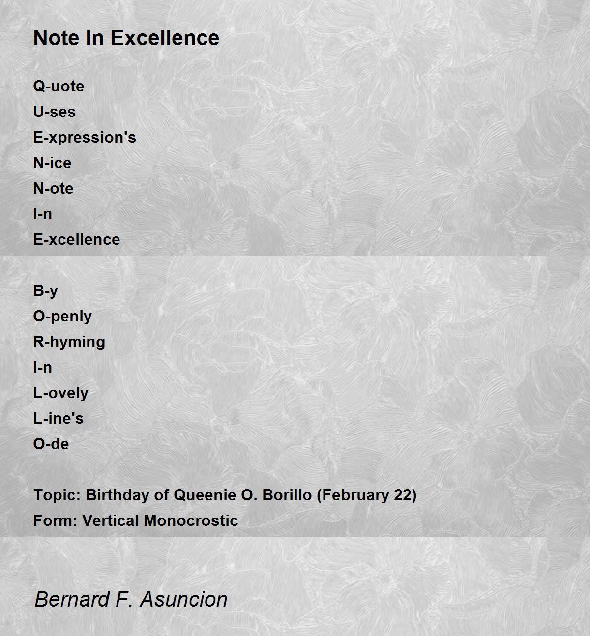 Topic: Birthday of Queenie O. Borillo (February 22)