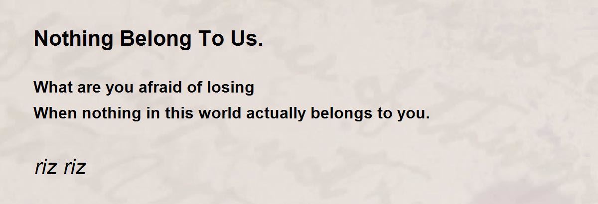 What are you afraid of losing When nothing in this world actually belongs to you.
