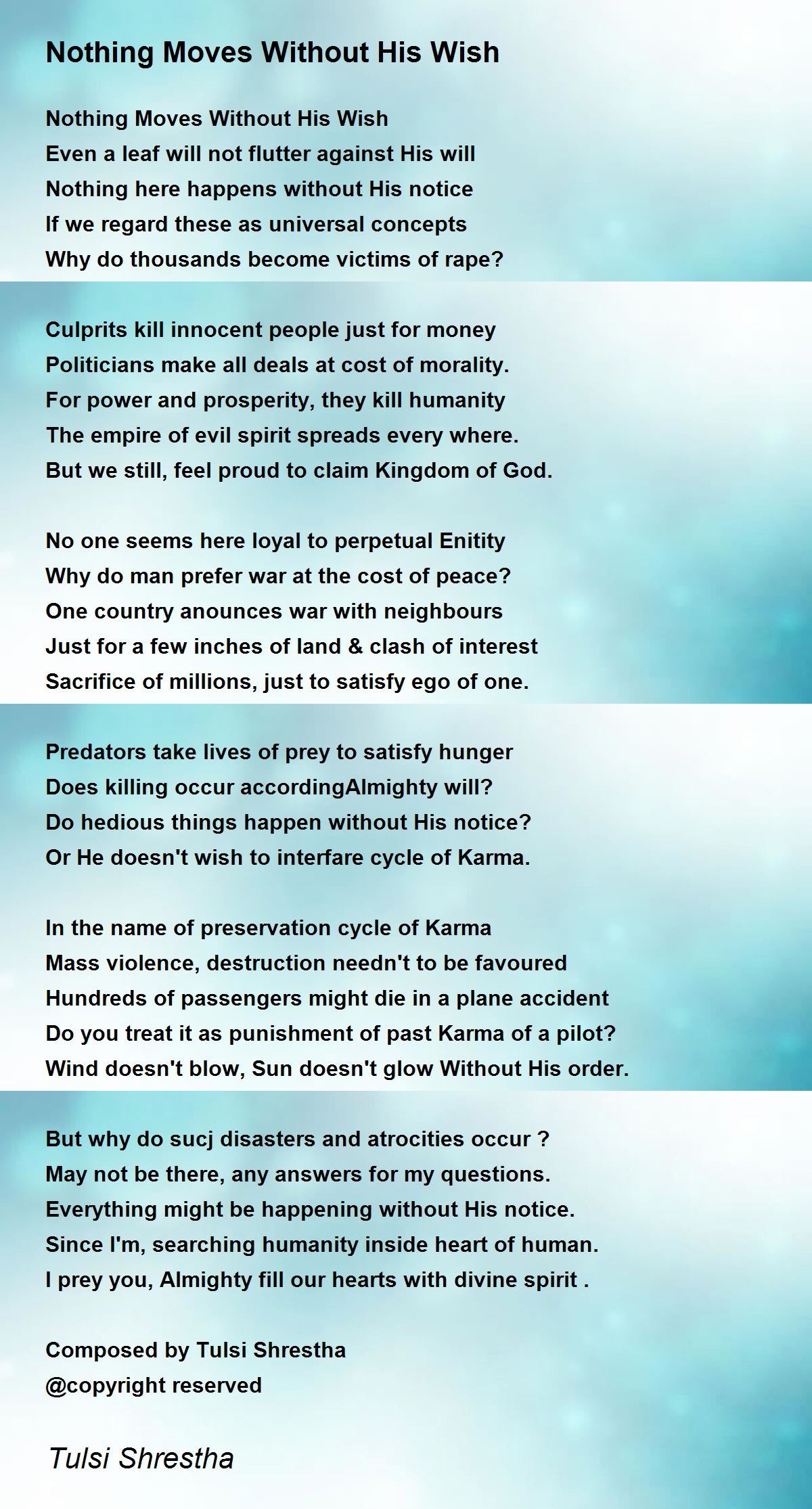 Wind doesn't blow, Sun doesn't glow Without His order.