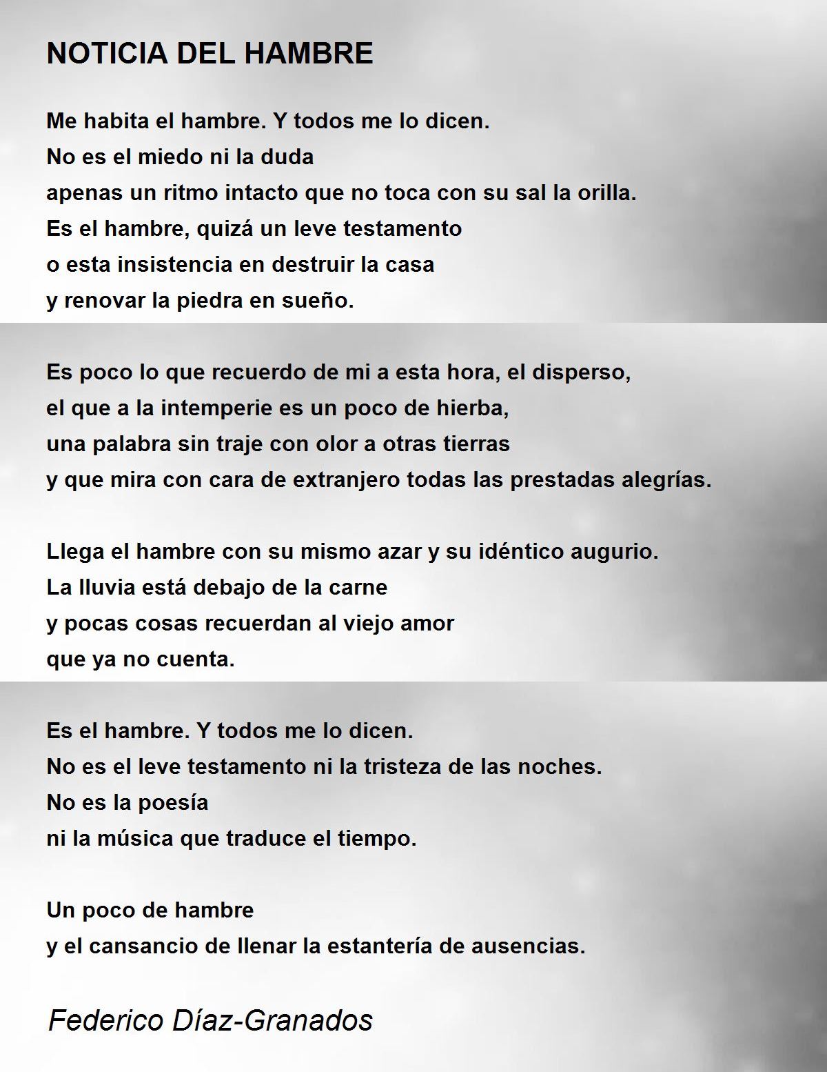 Es el hambre, quizá un leve testamento