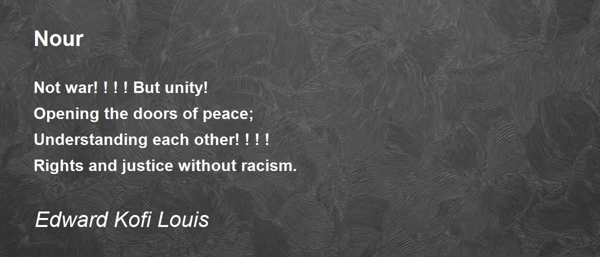 Not war! ! ! ! But unity! Opening the doors of peace; Understanding each other! ! ! ! Rights and justice without racism.