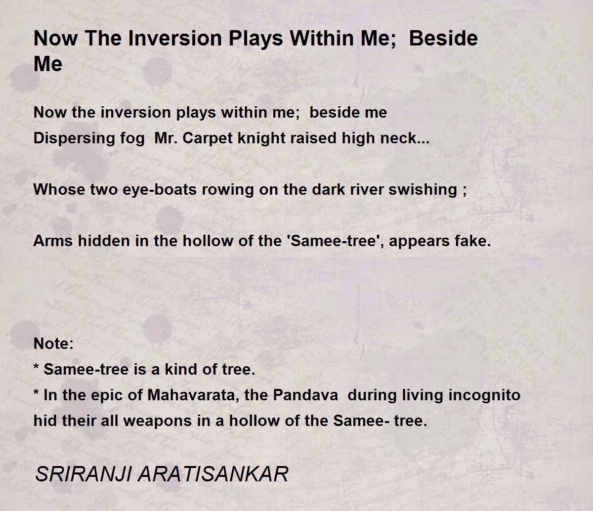 Now the inversion plays within me; beside me