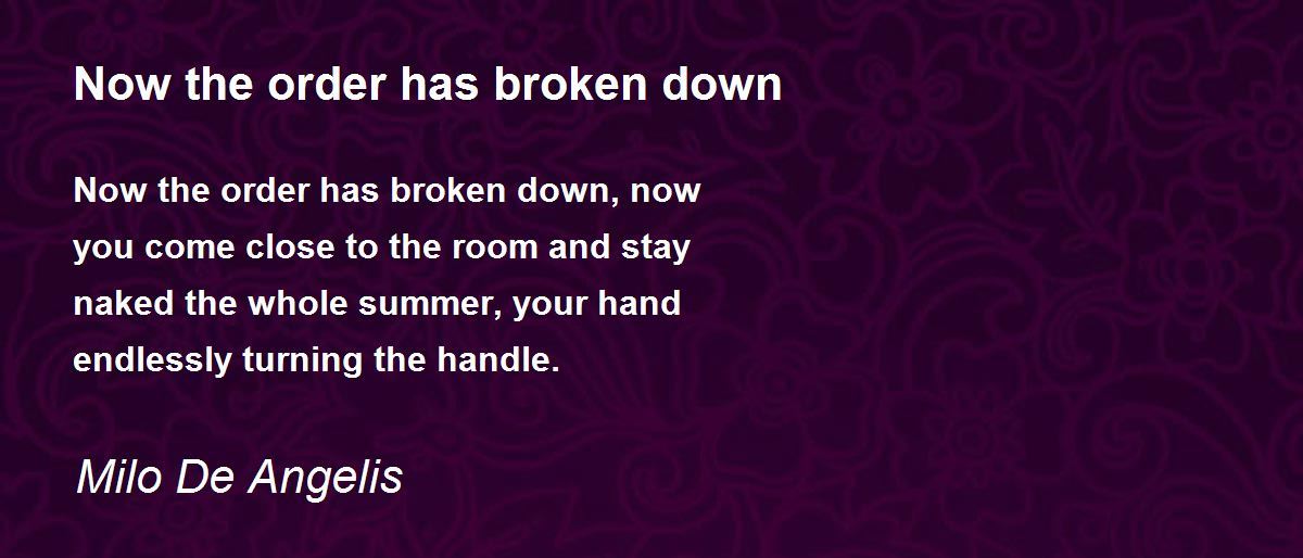 Now the order has broken down, now
