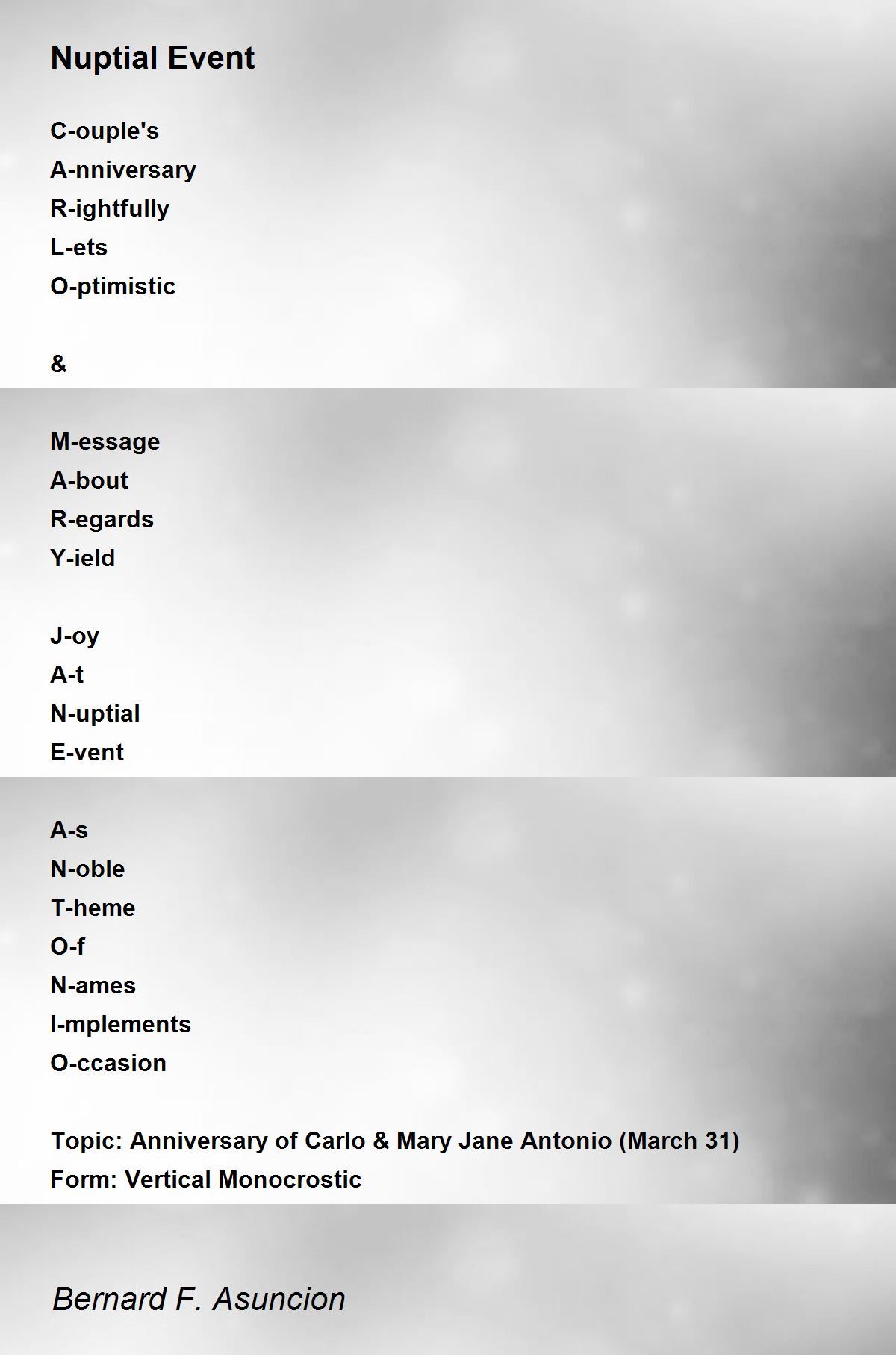 Topic: Anniversary of Carlo & Mary Jane Antonio (March 31)