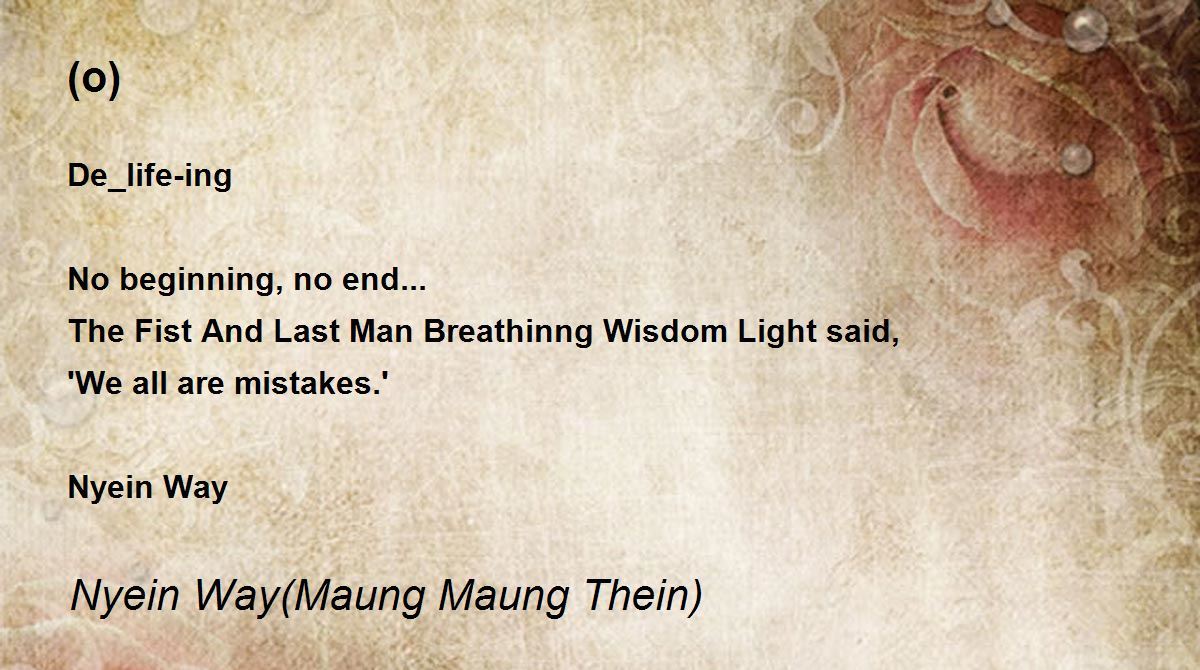 De_life-ing No beginning, no end... The Fist And Last Man Breathinng Wisdom Light said, 'We all are mistakes.' Nyein Way