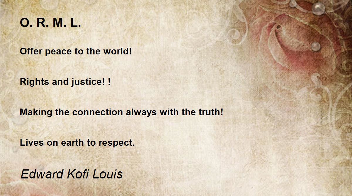 Offer peace to the world! Rights and justice! ! Making the connection always with the truth! Lives on earth to respect.