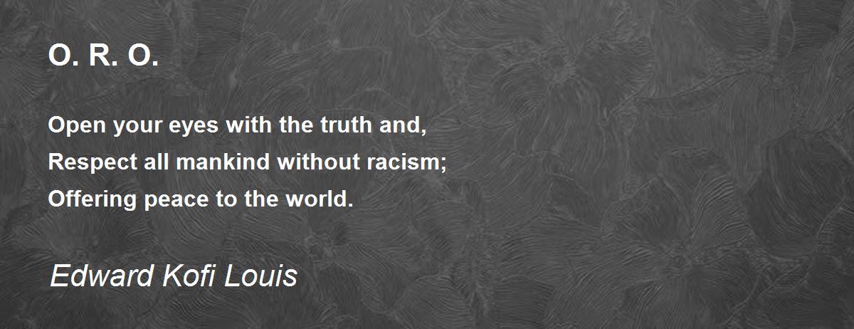 Open your eyes with the truth and, Respect all mankind without racism; Offering peace to the world.