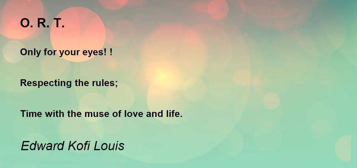 Only for your eyes! ! Respecting the rules; Time with the muse of love and life.