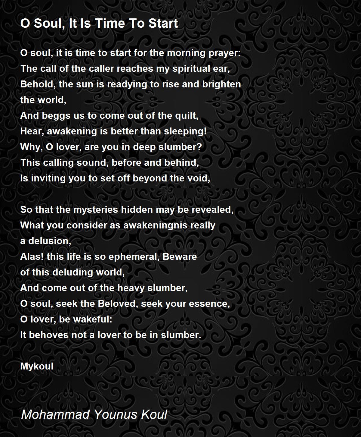 O soul, it is time to start for the morning prayer: