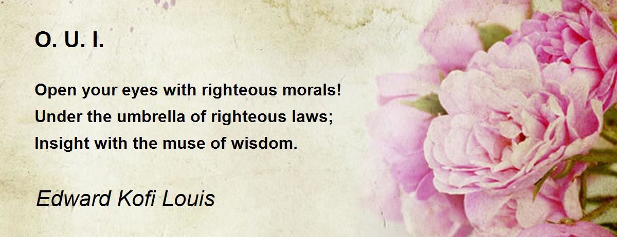 Open your eyes with righteous morals! Under the umbrella of righteous laws; Insight with the muse of wisdom.