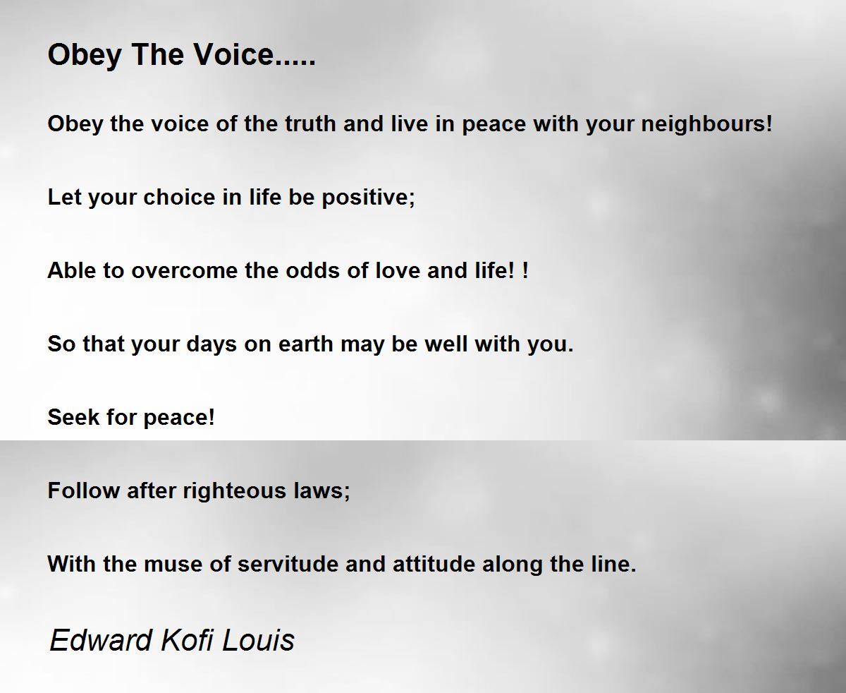 Obey the voice of the truth and live in peace with your neighbours! Let your choice in life be positive; ......right statement. Beautiful poem. Thanks for sharing.