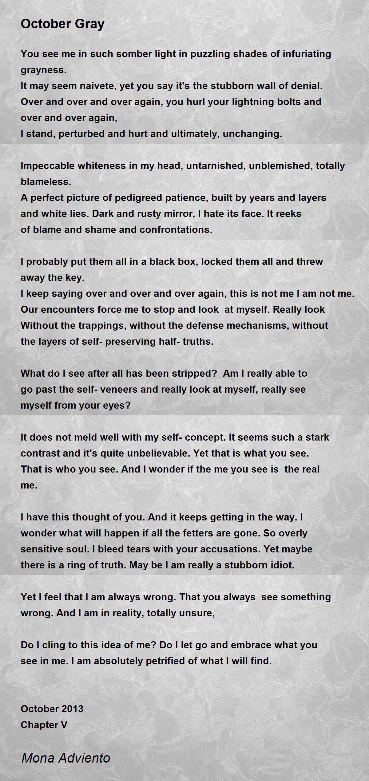 You see me in such somber light in puzzling shades of infuriating grayness.