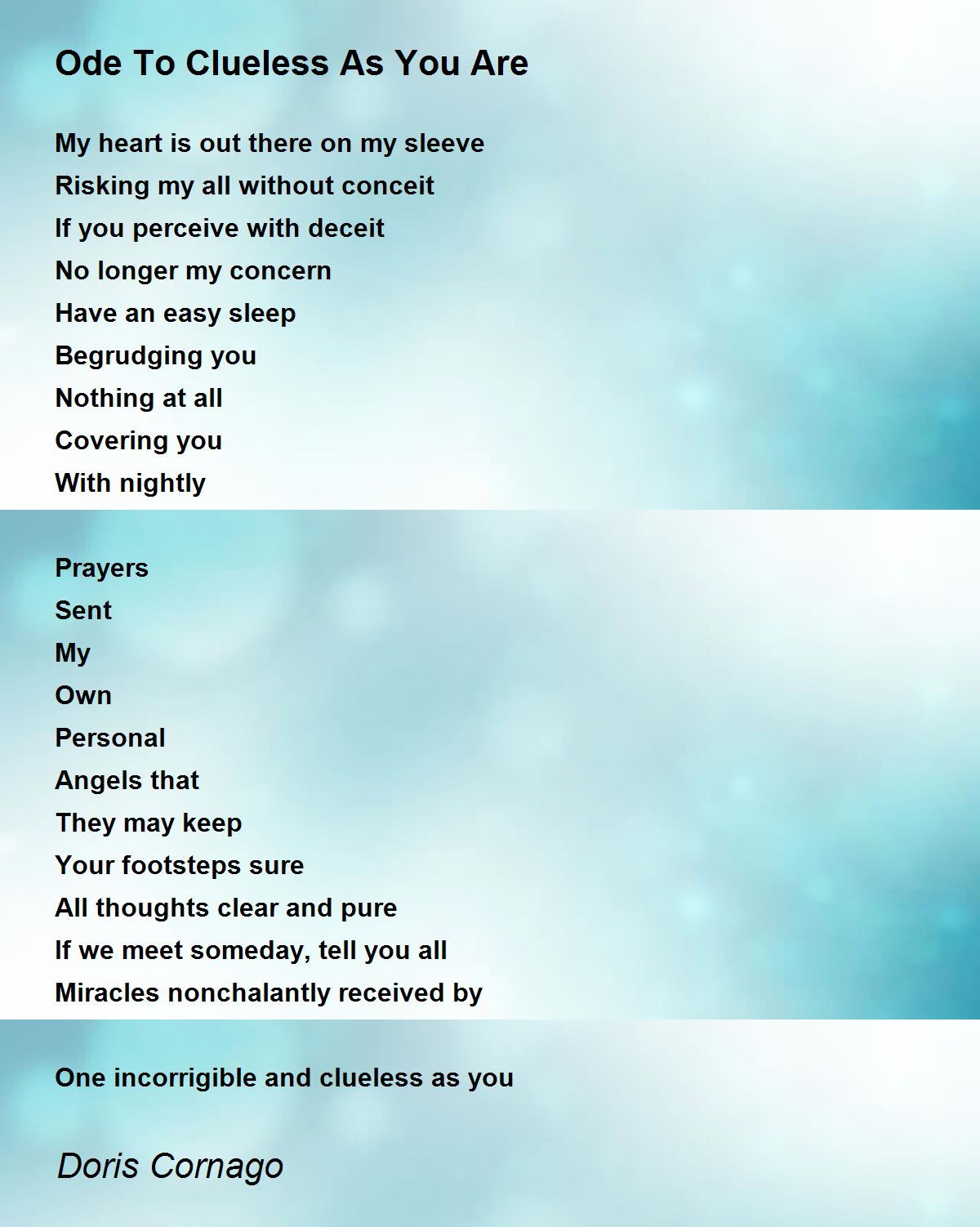 Your footsteps sure All thoughts clear and pure If we meet someday, tell you all Miracles nonchalantly received by One incorrigible and clueless as you.......nice poetic expression with theme behind. Beautiful poem shared.10