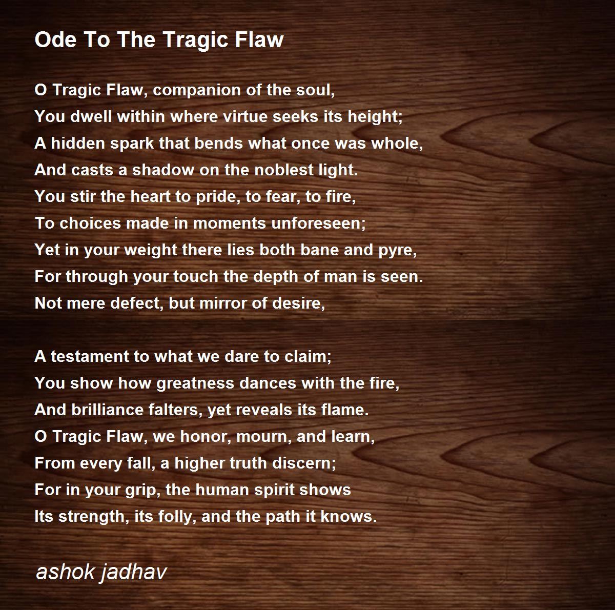 O Tragic Flaw, we honor, mourn, and learn,
