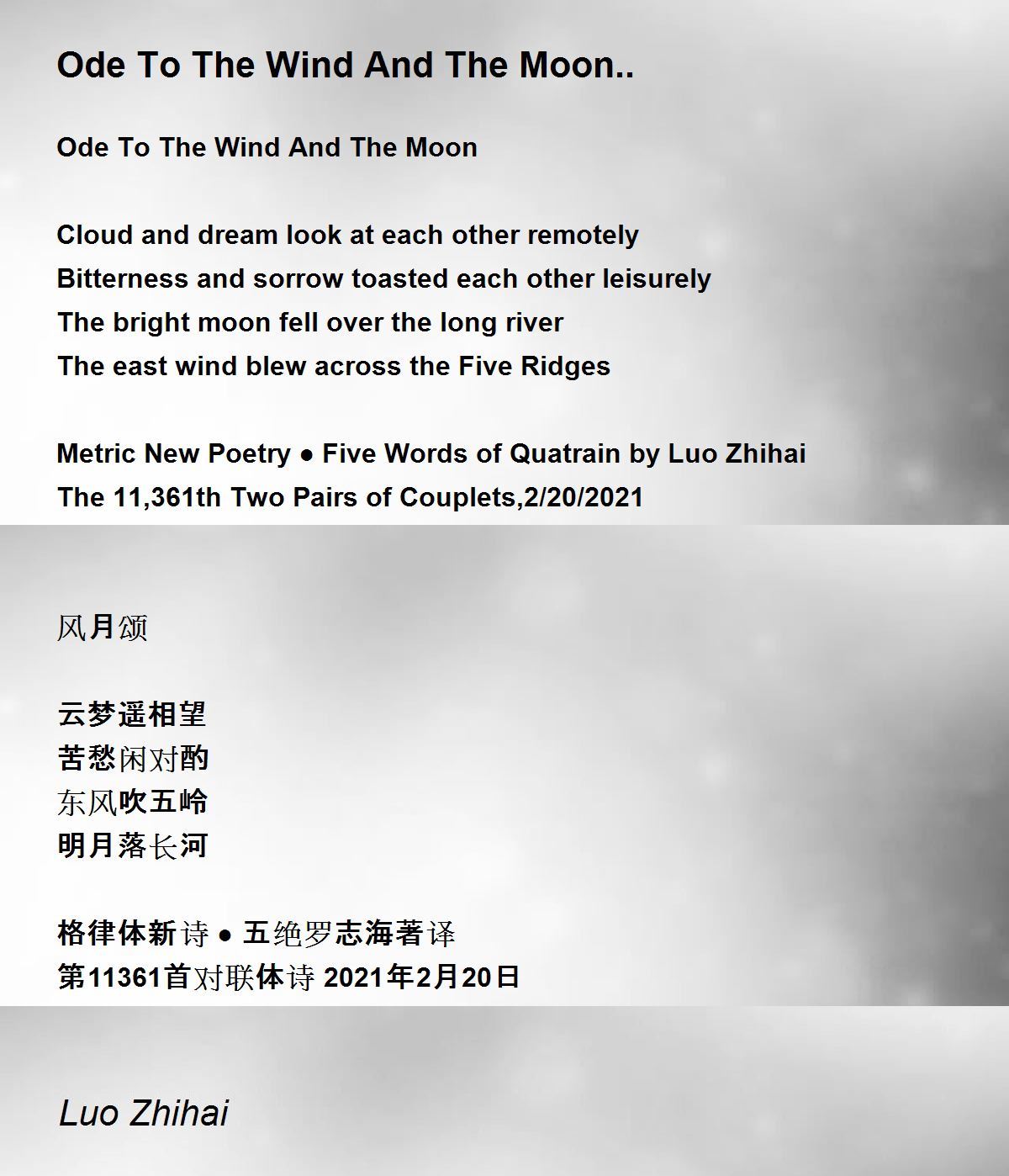 Metric New Poetry ● Five Words of Quatrain by Luo Zhihai