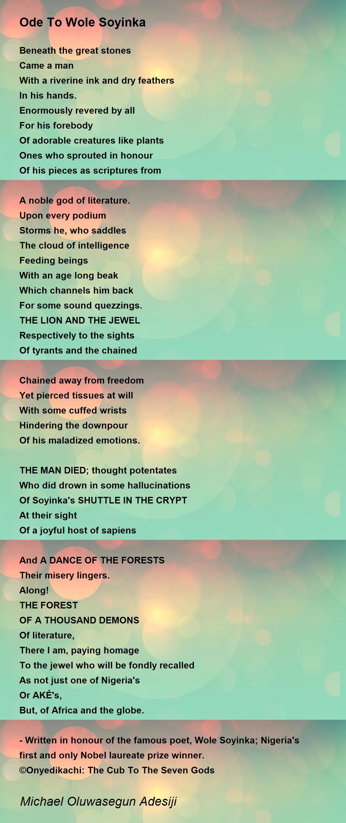 -Written in honour of the famous poet, Wole Soyinka; Nigeria's first and only Nobel laureate prize winner.