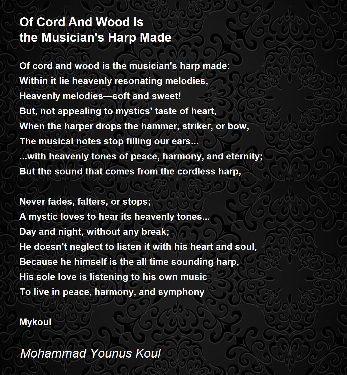 Let music soak the spirit of the listeners. Very touchy poem. Eid Mubarak Younus jii.