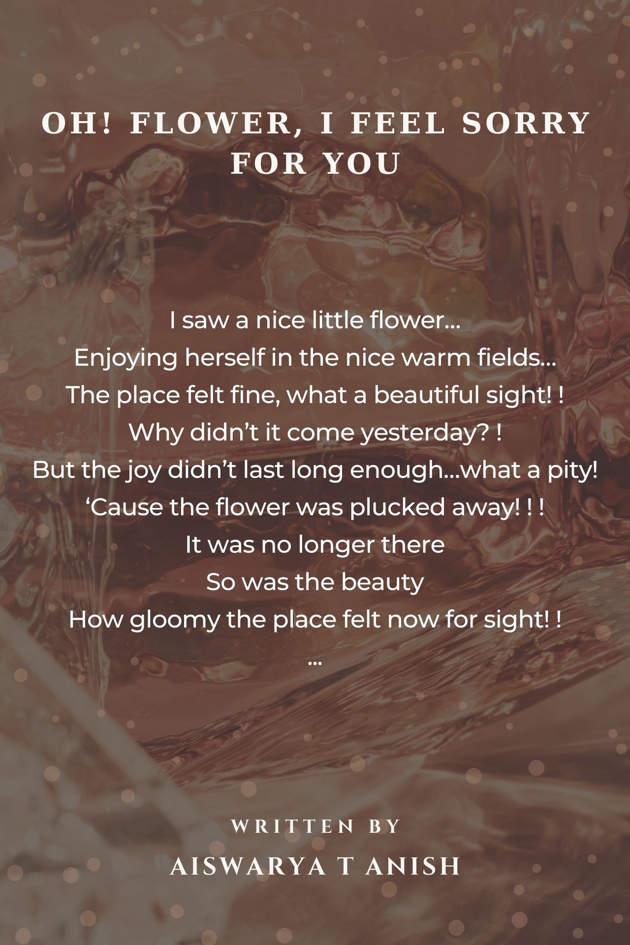 Why do we hurt these little things, who give us joy? ? They are the ones who blooms happiness to the world Aren’t we too bound to be blossomed into flowers of happiness? ? ? beautiful dear poetess. so young as you are, you lift up your mind into the world lofty thoughts........ how true are your words..... beauty is God... tony