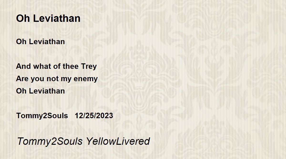 Oh Leviathan And what of thee Trey Are you not my enemy Oh Leviathan Tommy2Souls 12/25/2023