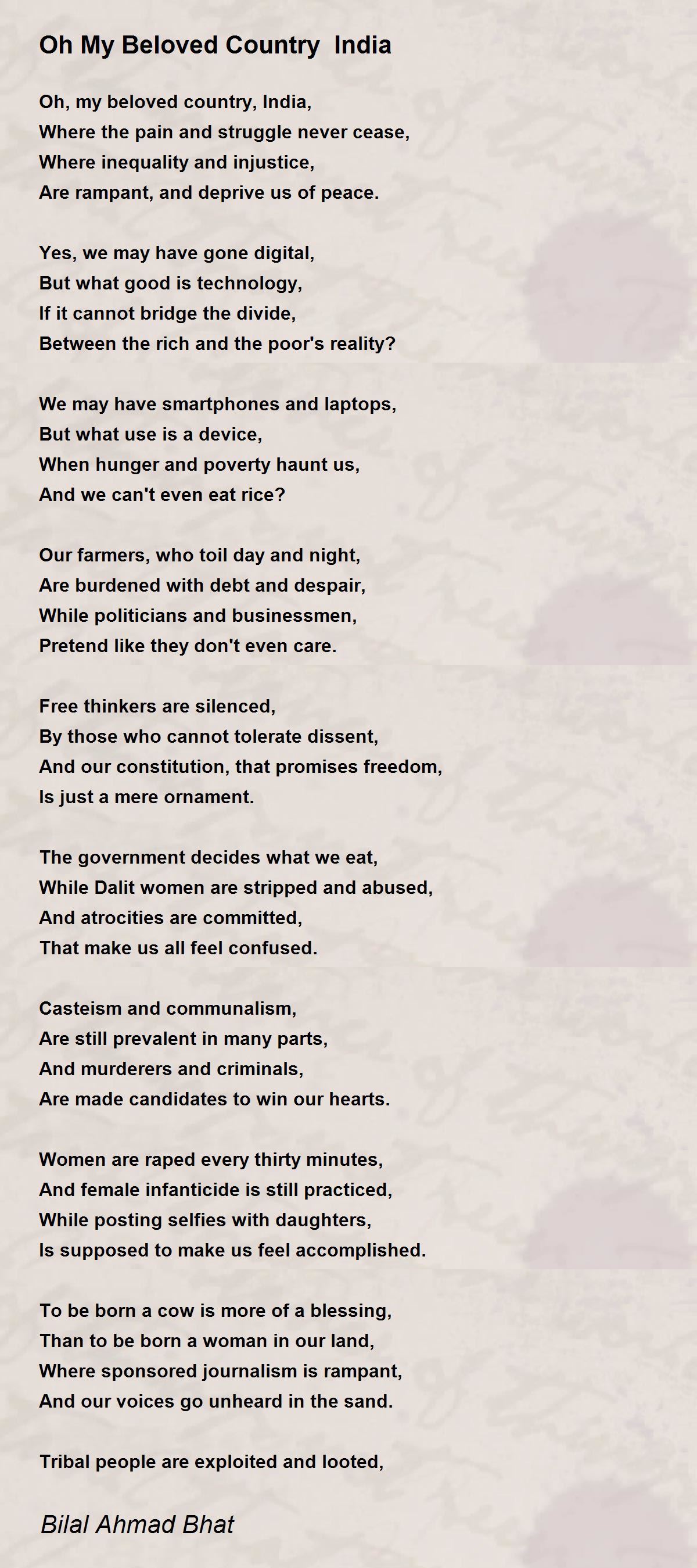 Oh, my beloved country, India,