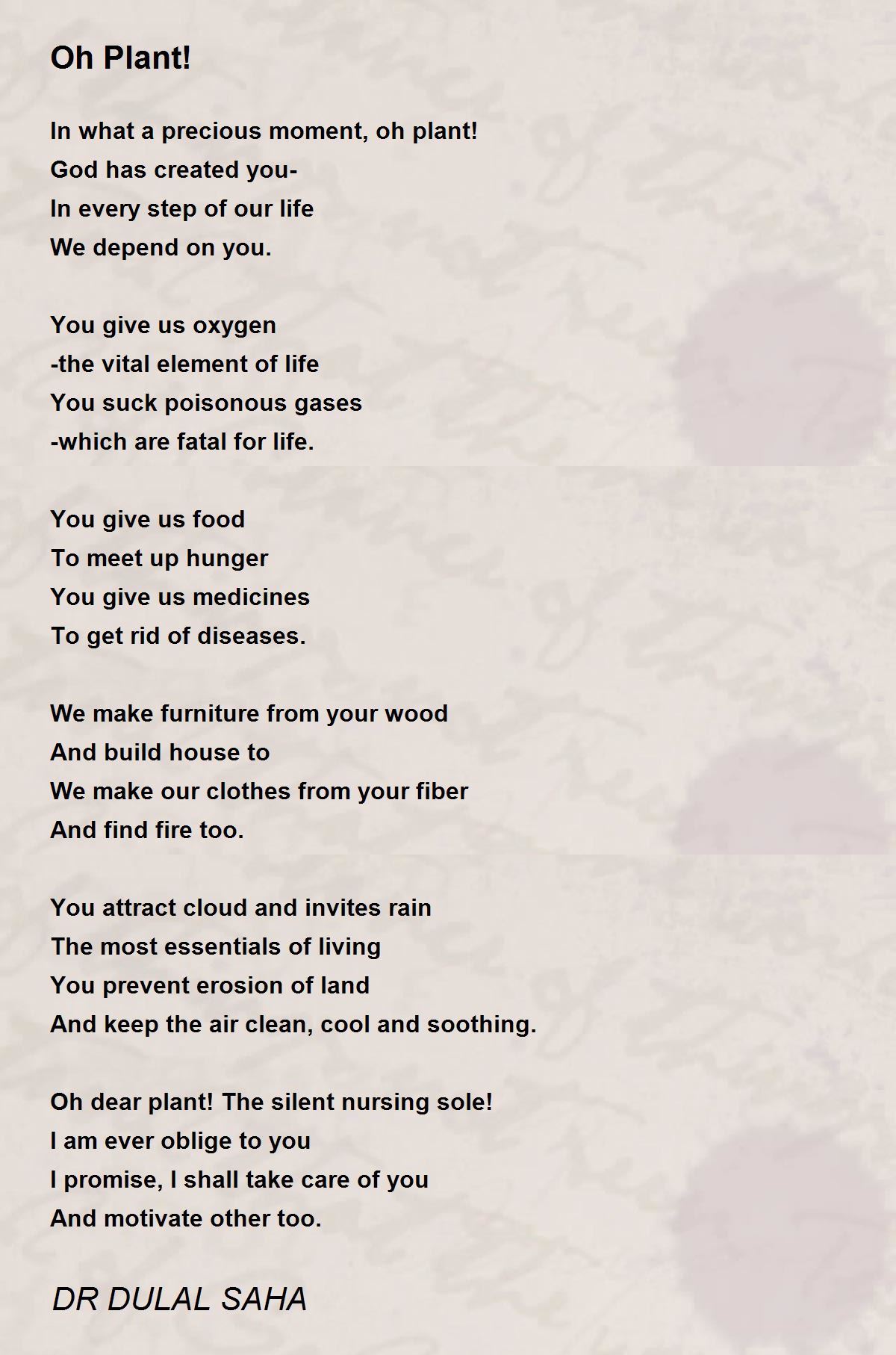 Oh dear plant! The silent nursing sole!