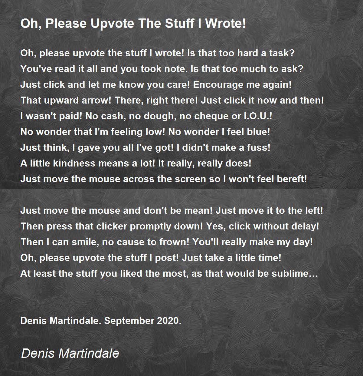 Oh, please upvote the stuff I wrote! Is that too hard a task?