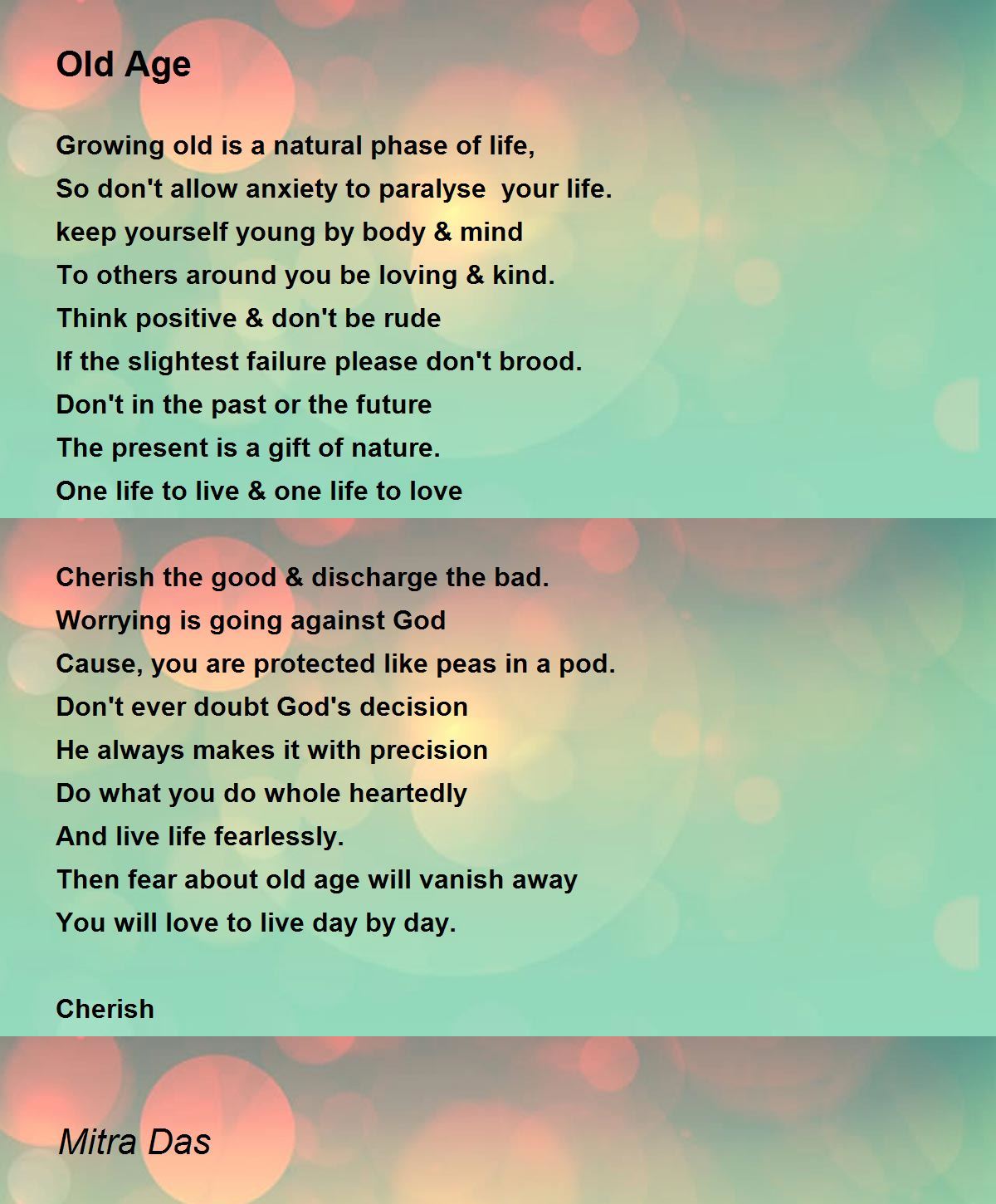 Then fear about old age will vanish away