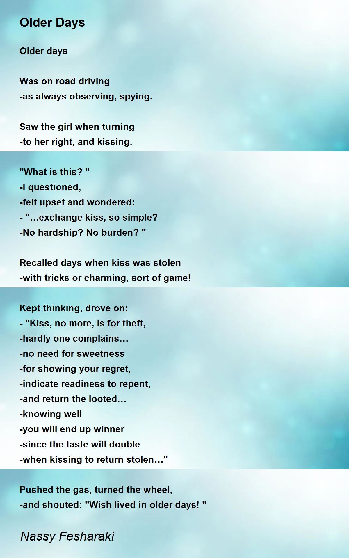Recalled days when kiss was stolen