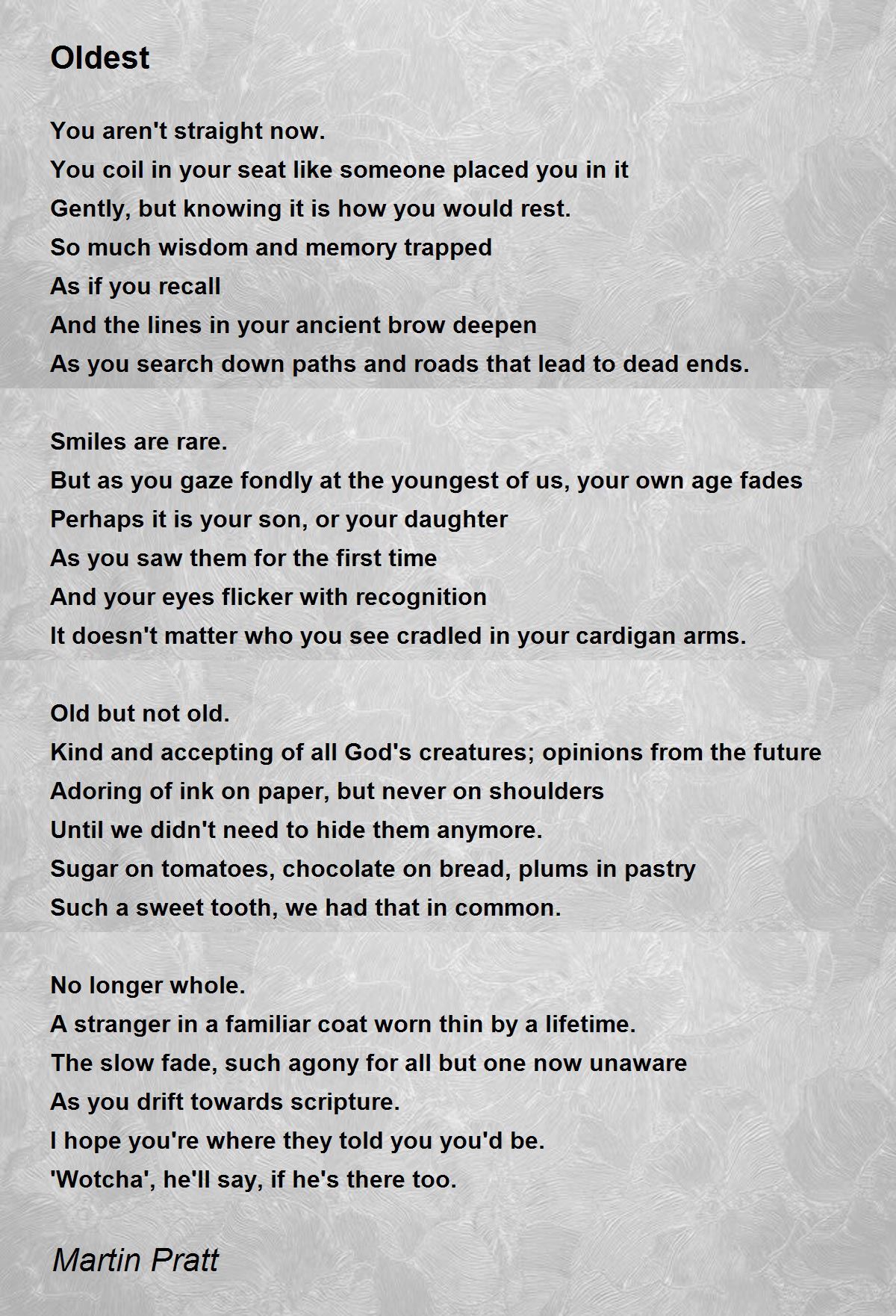 And the lines in your ancient brow deepen