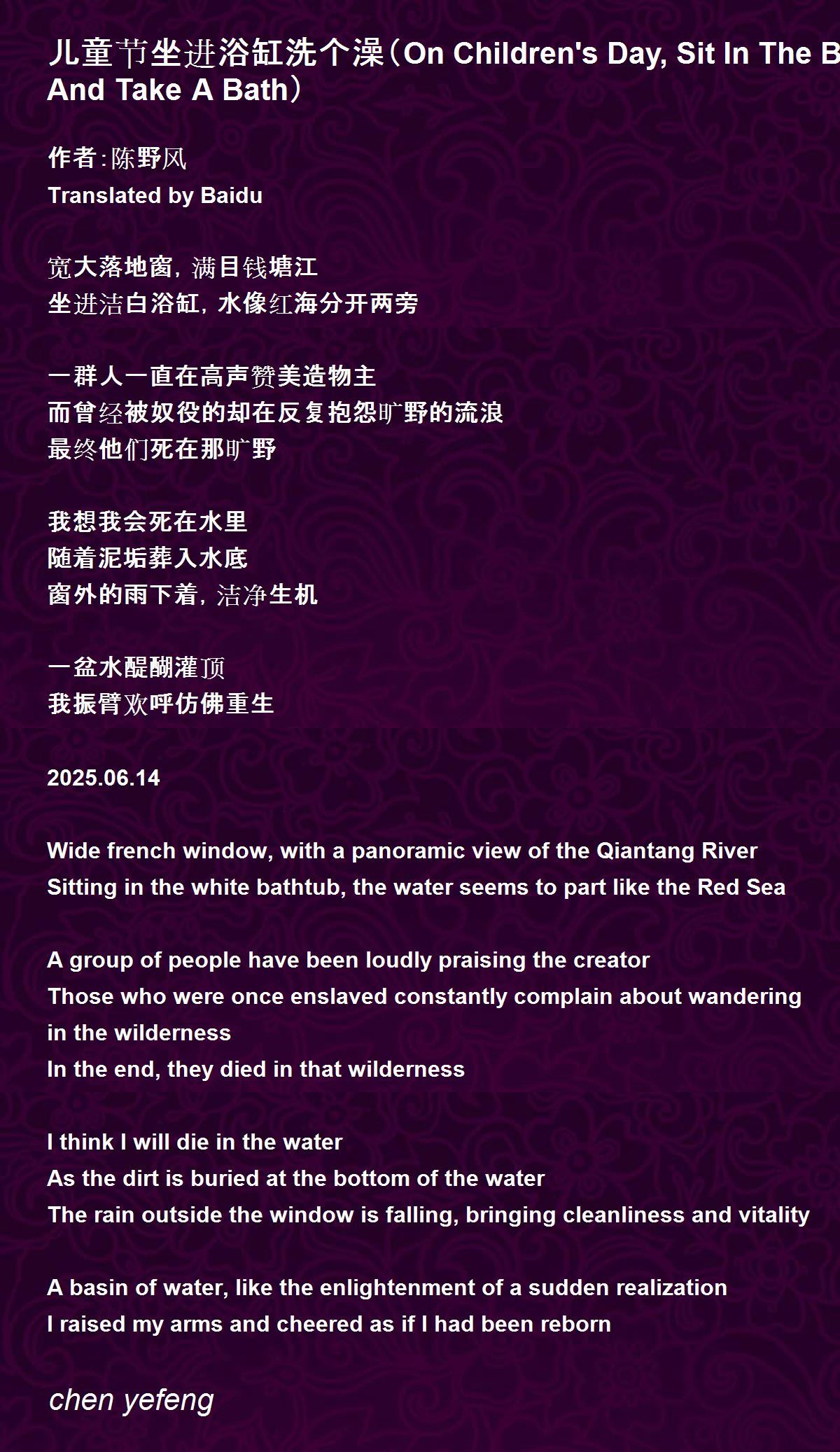 Sitting in the white bathtub, the water seems to part like the Red Sea