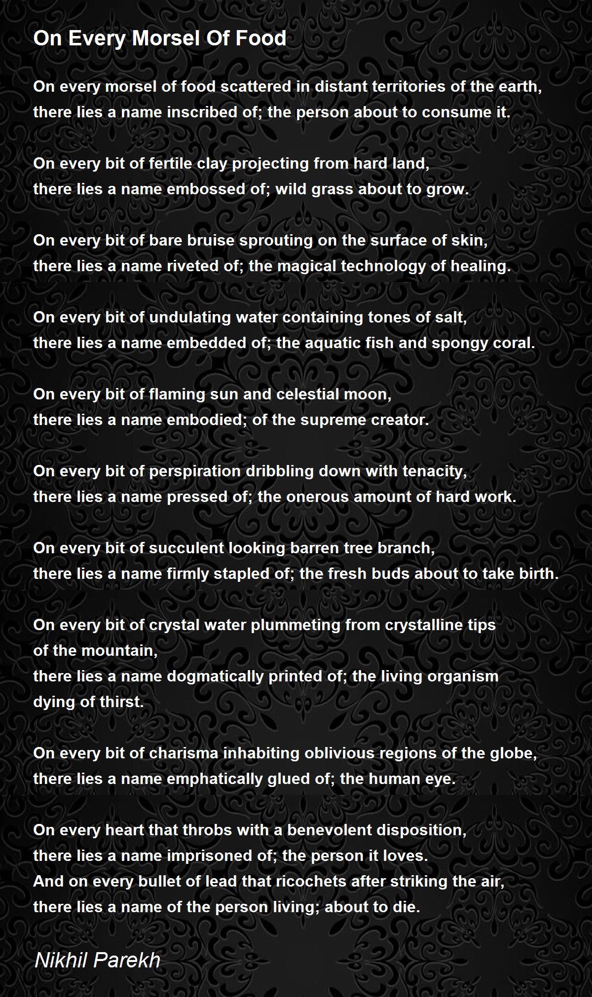 On every morsel of food scattered in distant territories of the earth,