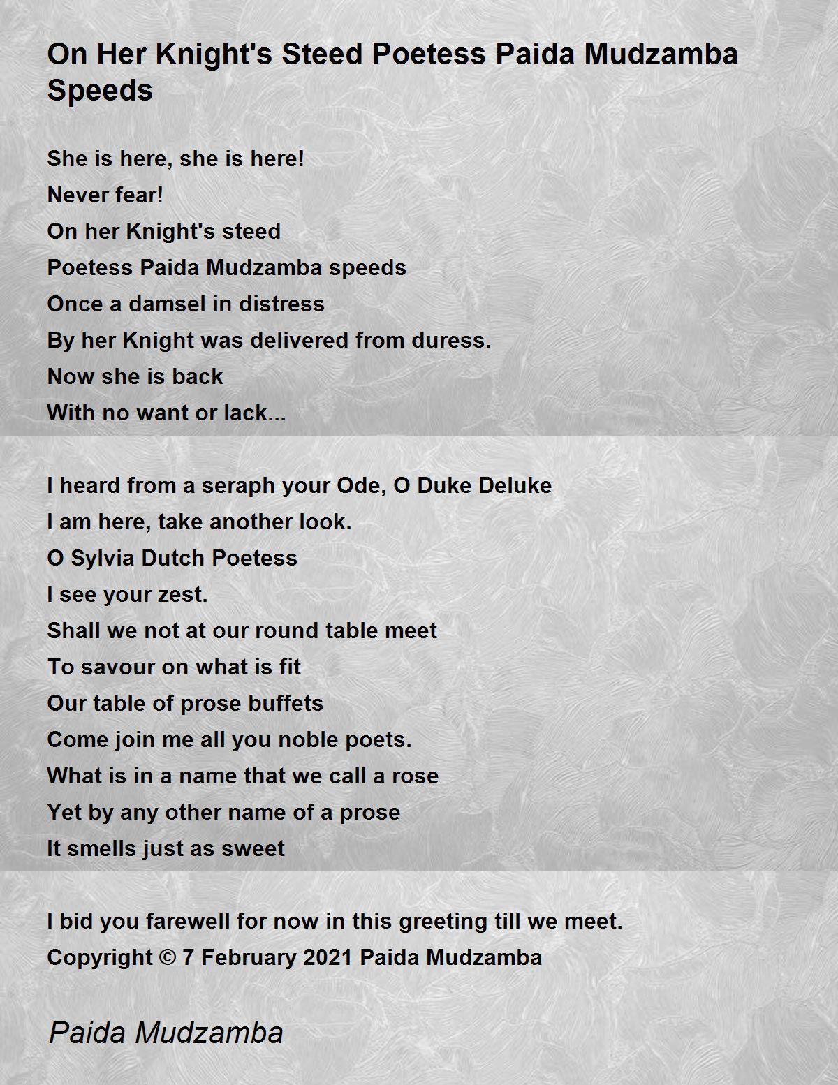 Copyright © 7 February 2021 Paida Mudzamba