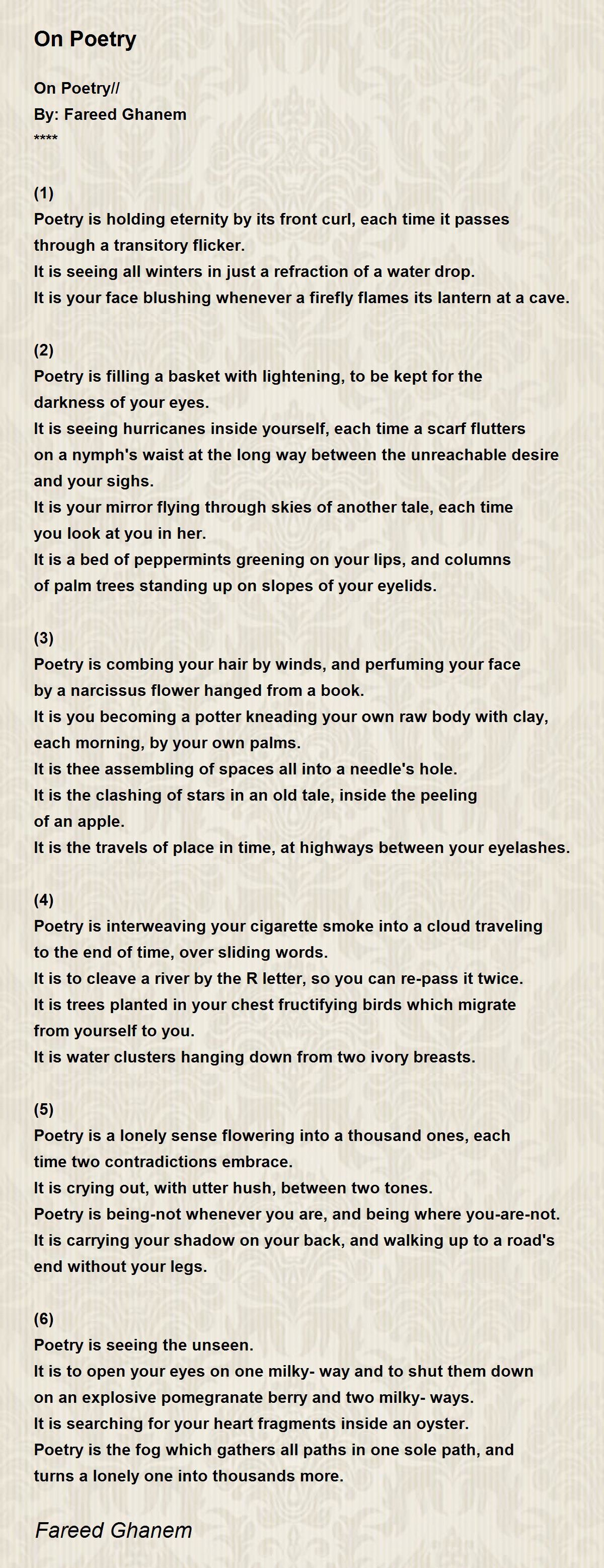Poetry is combing your hair by winds, and perfuming your face by a narcissus flower hanged from a book.