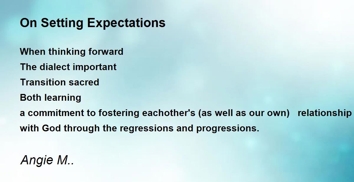 a commitment to fostering eachother's (as well as our own) relationship with God through the regressions and progressions.