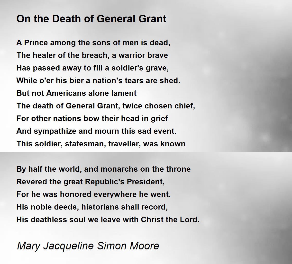 The death of General Grant, twice chosen chief,