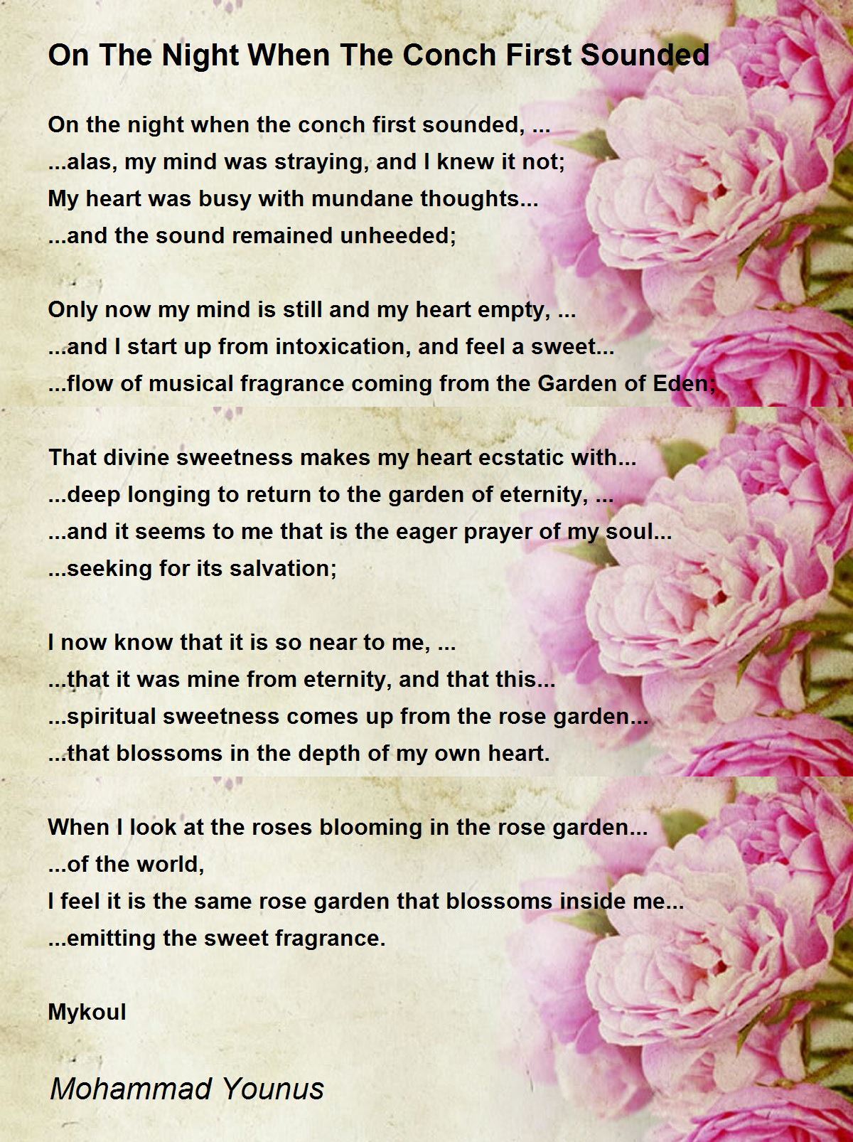 I feel it is the same rose garden that blossoms inside me...