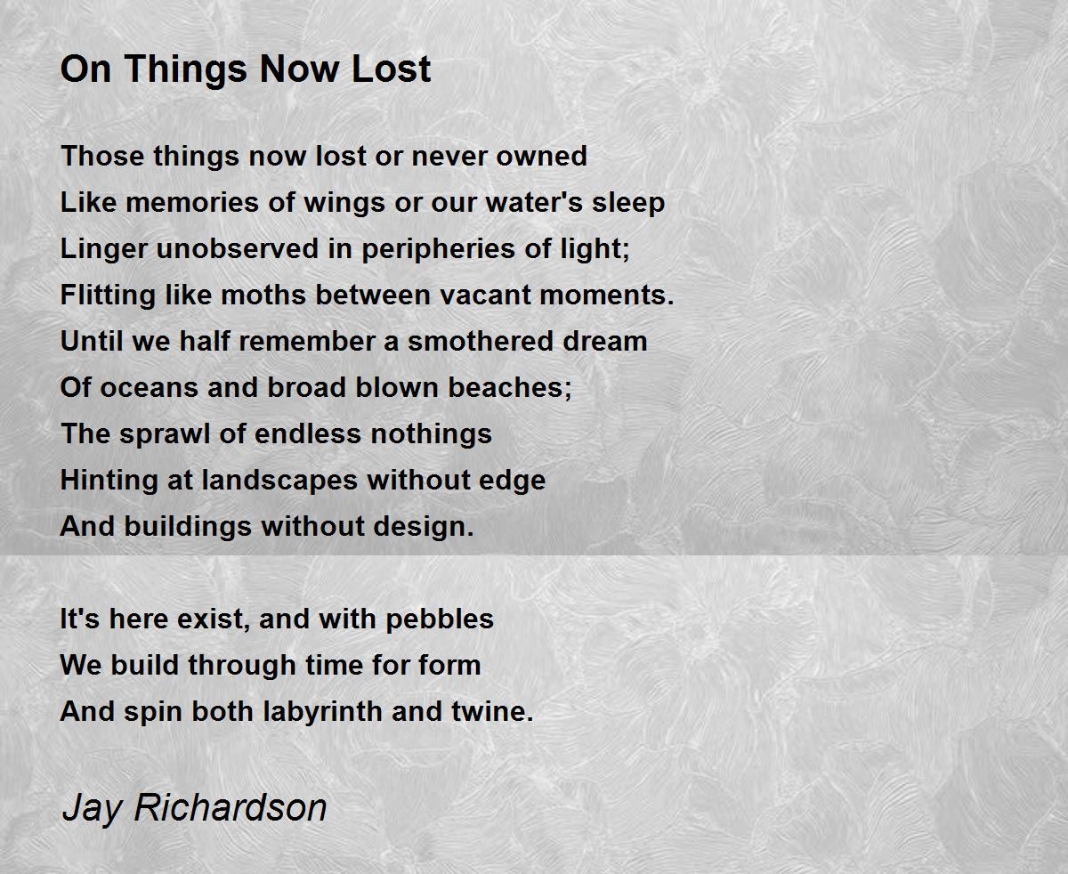 Those things now lost or never owned