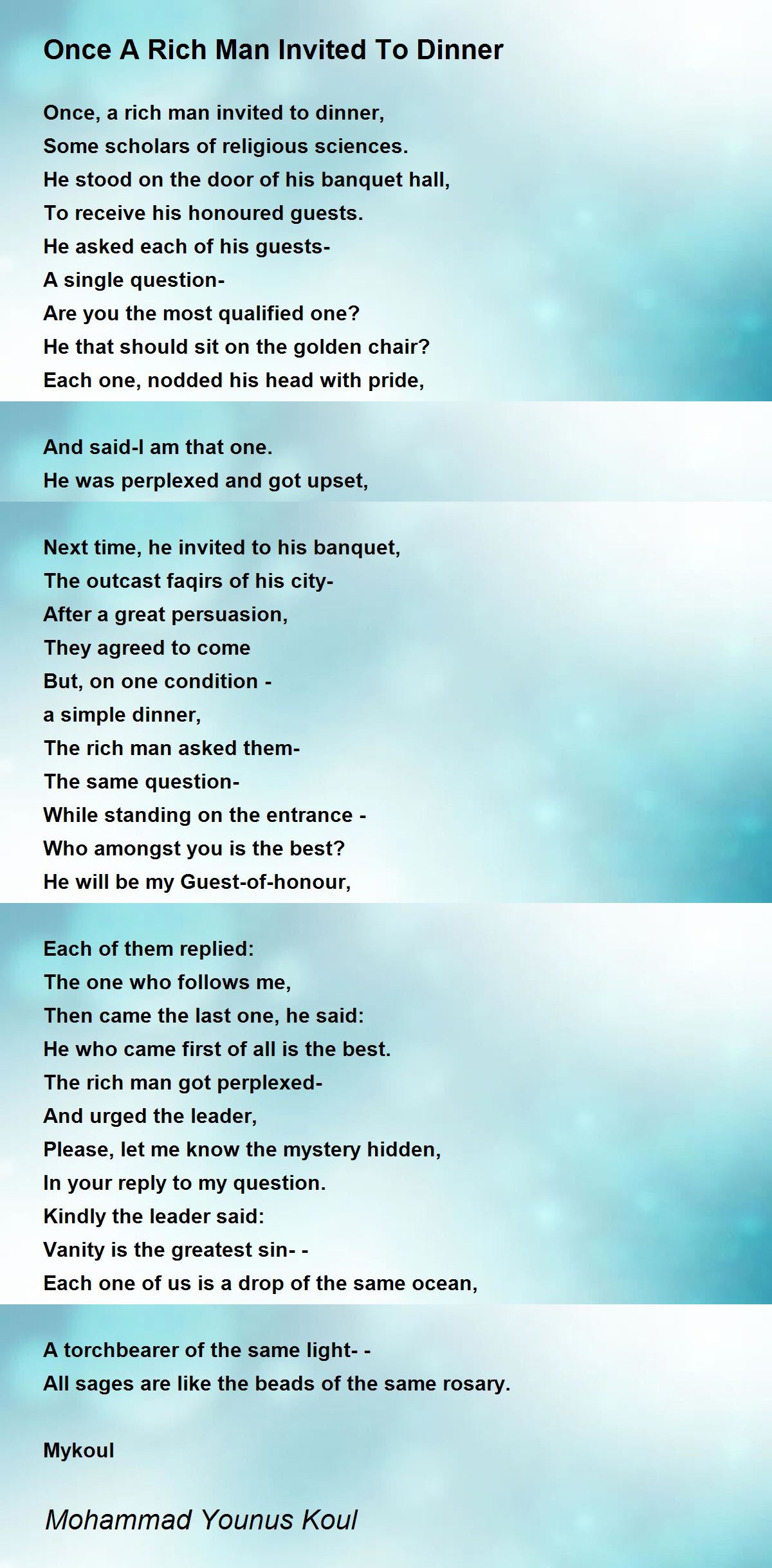 Once, a rich man invited to dinner,