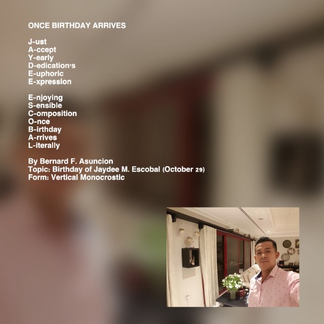 Topic: Birthday of Jaydee M. Escobal (October 29)