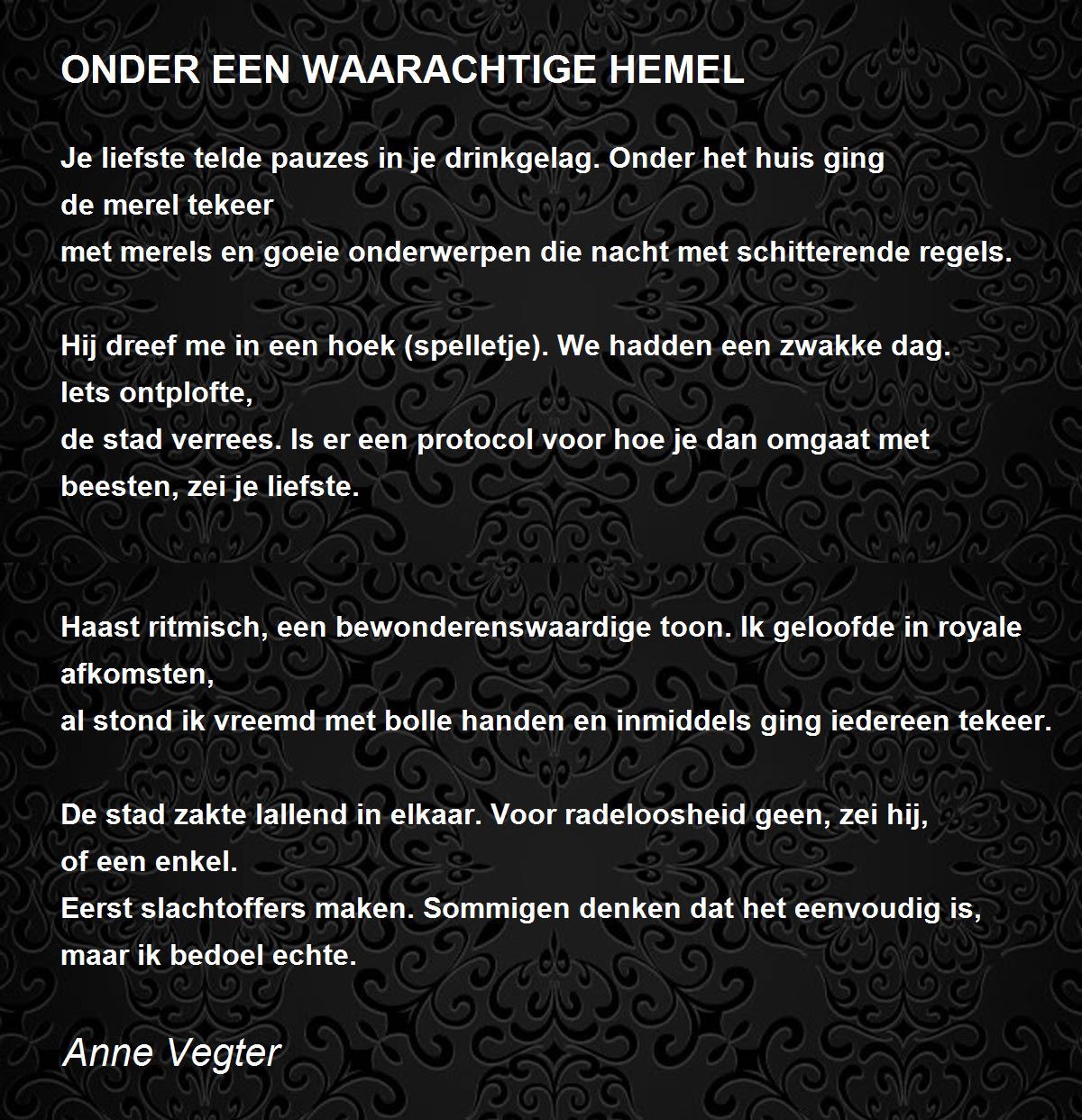 de stad verrees. Is er een protocol voor hoe je dan omgaat met beesten, zei je liefste.