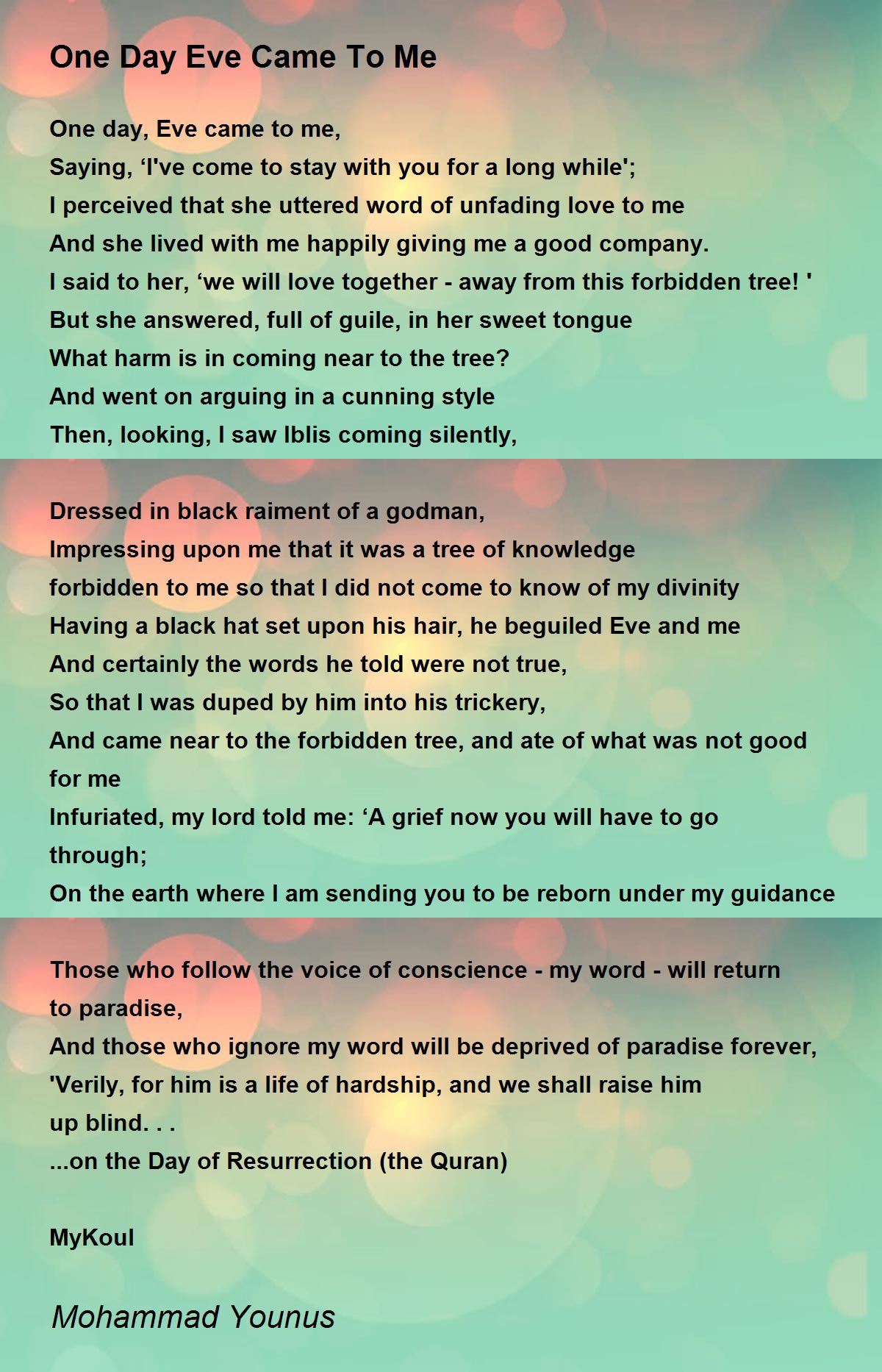 I said to her, ‘we will love together - away from this forbidden tree! '