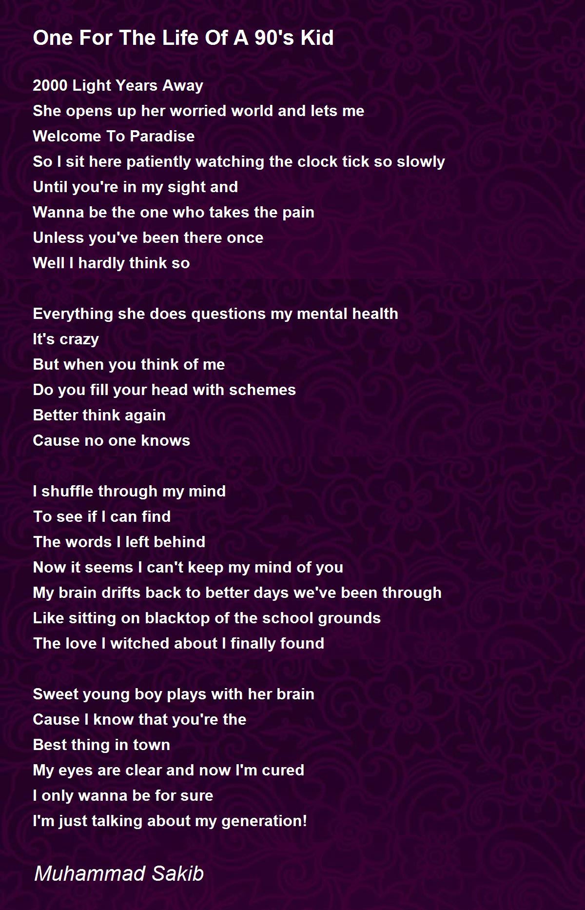 lovely penned- My brain drifts back to better days we've been through Like sitting on blacktop of the school grounds The love I witched about I finally found