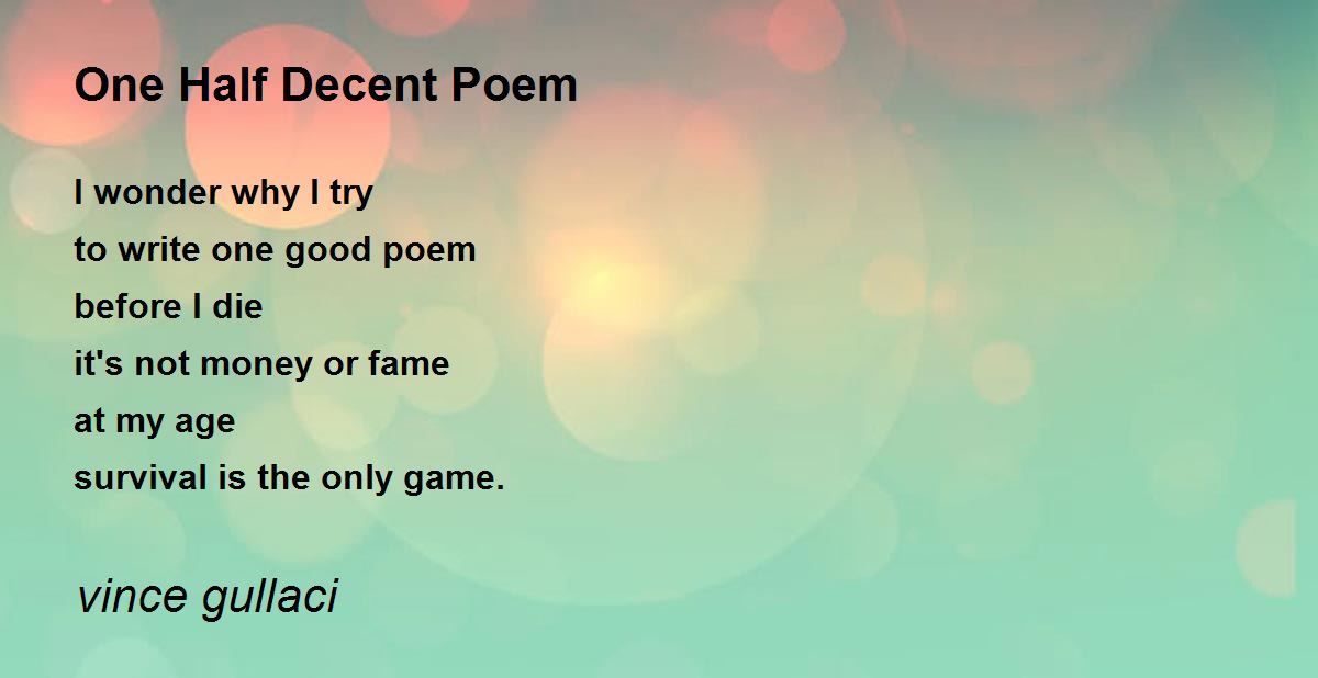 I wonder why I try to write one good poem before I die it's not money or fame at my age survival is the only game.