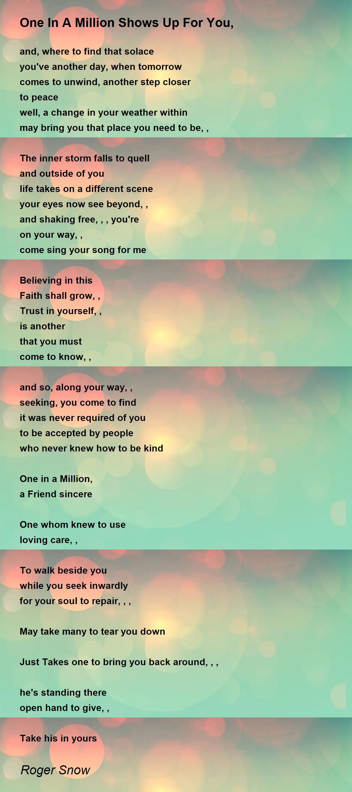 ~~~~~~~~~~~~~~ One in a Million shows up for you, not for themselves, Take their Hand ~~~~~~~~~~~