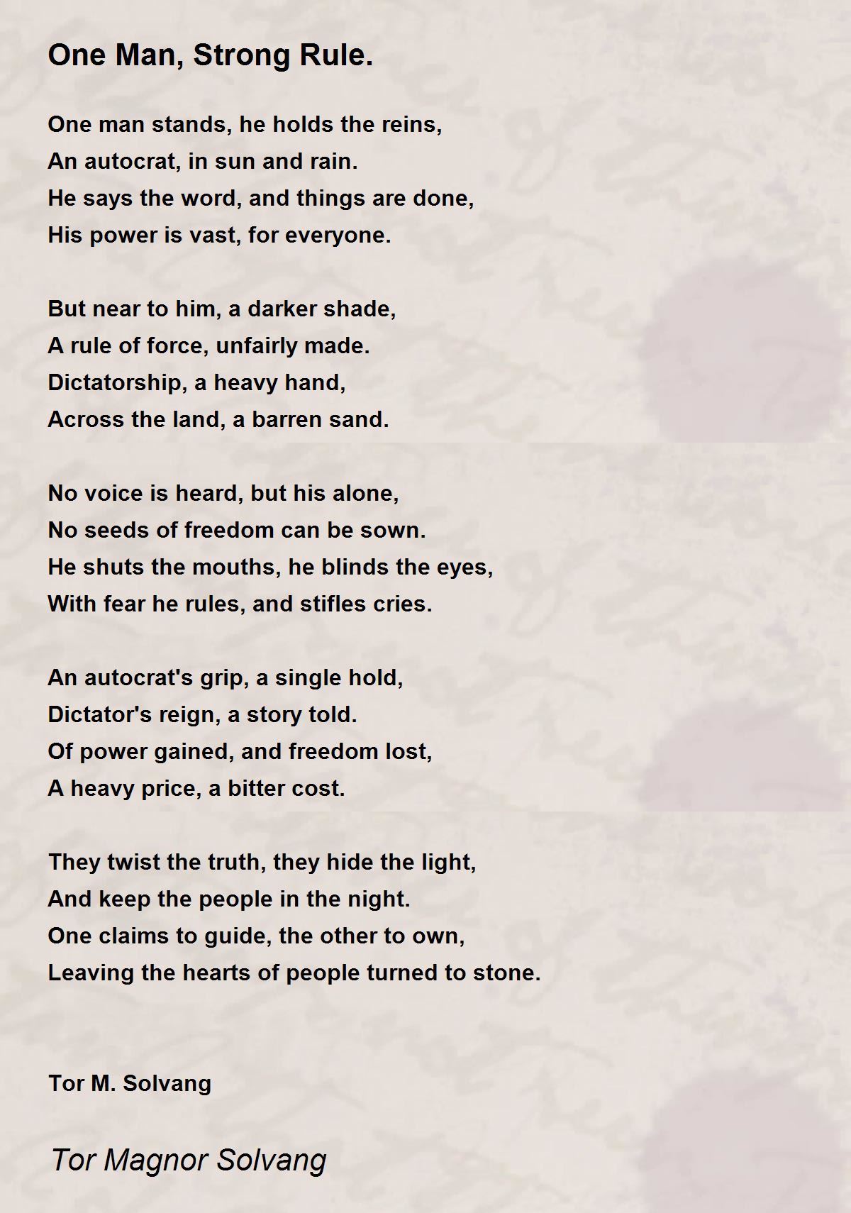 Dictatorship, a heavy hand,