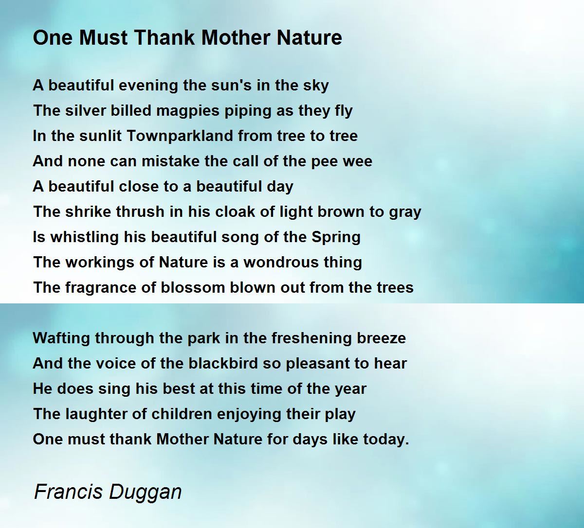 And the voice of the blackbird so pleasant to hear