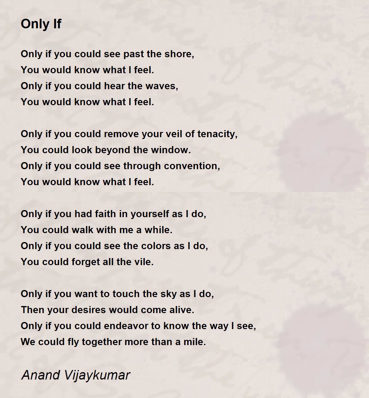 Only if you could endeavor to know the way I see,