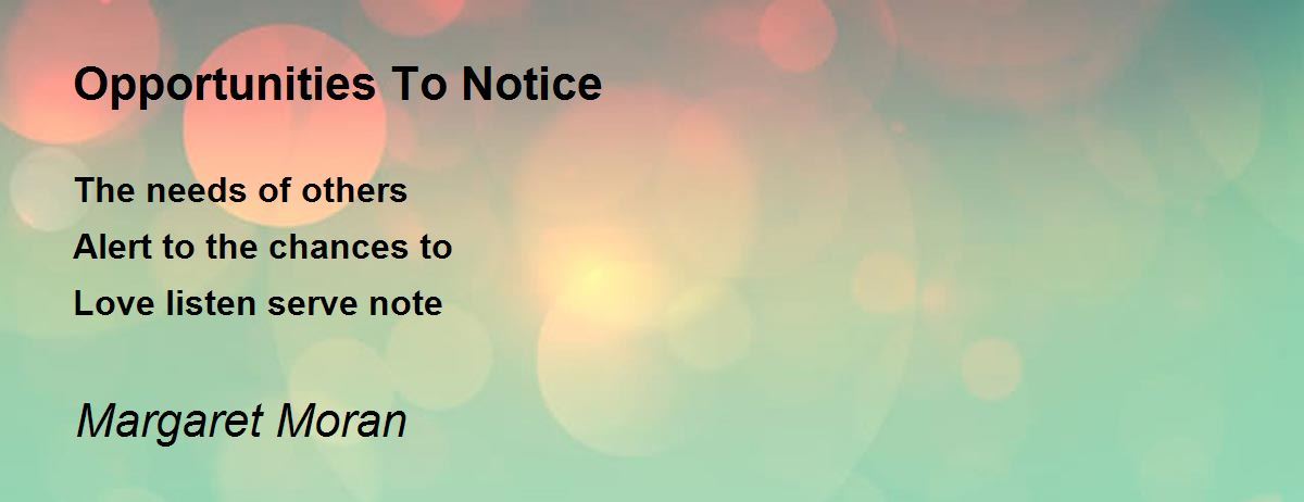 We need to take every opportunity to serve someone. No opportunity is too small. The least gesture of kindness, help, consideration, or whatever, speaks volumes. Only God knows the fruitful outcome!
